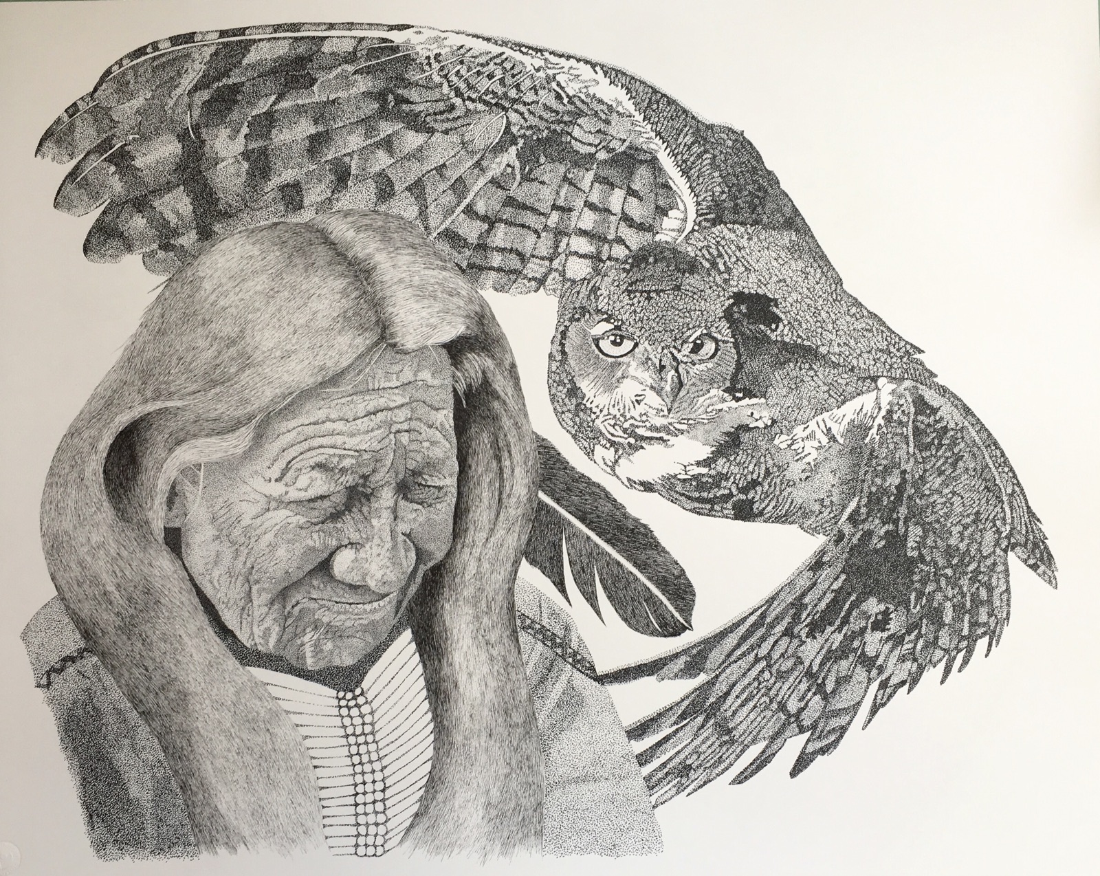 Don's style of pen and ink is known as pointillism (also called divisionism), which is the practice of applying small dots of ink to a surface so that from a distance they visually blend together. If you see any you like, please contact us and we'll let you know which prints are available for purchase, or show you more that aren't pictured here.